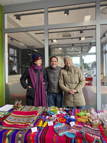 Neben den Zimtwaffeln, konnten wir dieses Jahr auch neue bolivianische Produkte anbieten. Neben kleinen Mäppchen und bunt gewebten Decken, verkauften wir insbesondere Mützen und Socken aus Alpaca Wolle. Ein großer Dank geht an Herrn Klesen den Marktleiter, der uns auch in diesem Jahr mit der Spende der Zutaten sehr unterstützt hat. Natürlich wie immer auch ein Dankeschön an die Bäcker:innen, die die leckeren Zimtwaffeln zubereitet haben. Wir konnten viele Kunden über das Projekt informieren und es gab auch einige Spenden. 451 € sind durch die eintägige Aktiion zusammengekommen. Ein schönes Ergebnis für die Kinder in Chocaya.